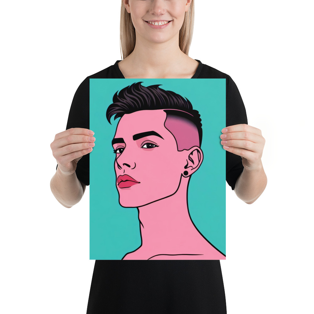 Tom’s edgy undercut and sharp gaze command attention. His pink-toned palette gives a contemporary twist, highlighting his striking features and fearless expression. Tom symbolizes uniqueness and unapologetic self-expression.